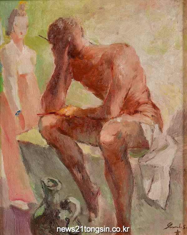 ▲ 이인성, 인물(男子누드), 1930년대, 25.5×20.5cm, Oil on canvas