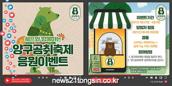 추첨을 통해 총 100명에게 양구 특산물인 곰취 한 박스(1kg)와 스타벅스 아메리카노 기프티콘을 제공할 예정이다.