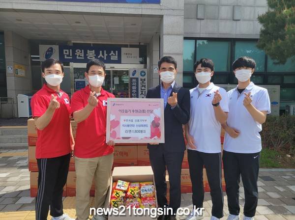 용인시 처인구 포곡읍은 11일 둔전리 소재 용인대 신성태권도장 유영호 관장 등 관계자들이 읍 행정복지센터를 찾아 어려운 이웃을 위해 써달라며 라면 1800봉지를 기탁했다고 밝혔다.