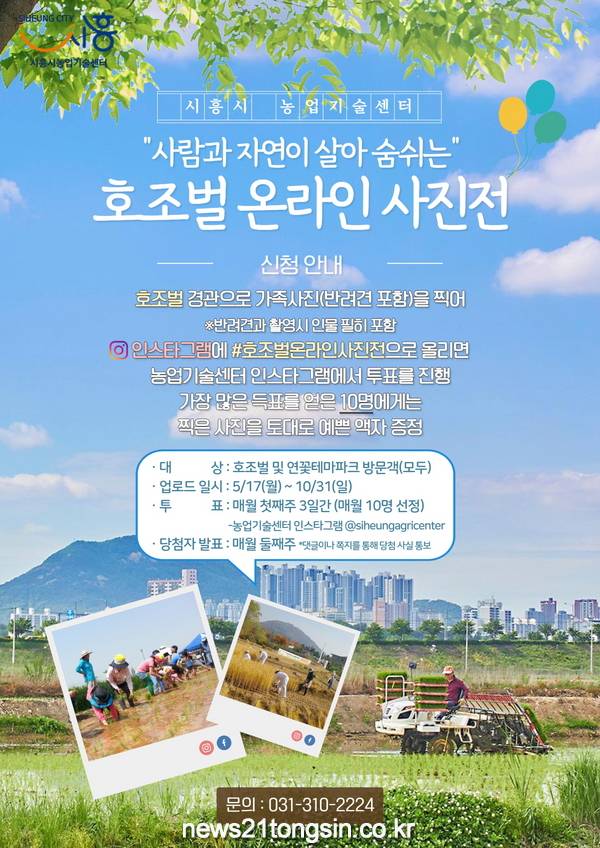 사진전은 5월 17일부터 10월 31일까지 매달 1회씩 총 6회 개최된다. 매월 첫째주 3일간 시흥시농업기술센터 인스타그램에서 투표를 진행해 가장 많은 표를 얻은 10명에게는 찍은 사진을 예쁜 액자로 만들어 증정한다.