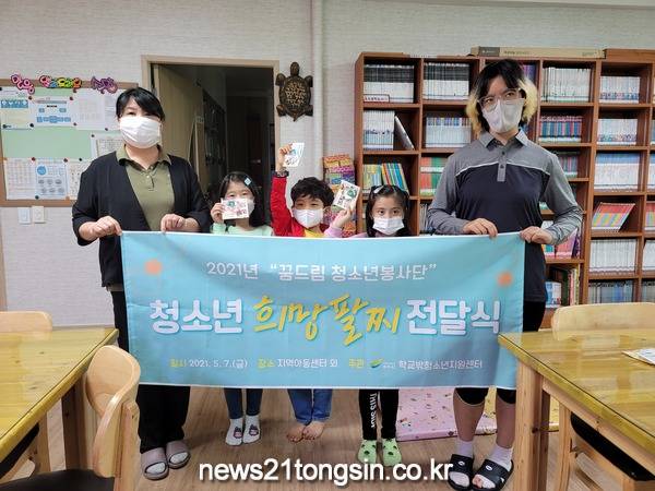 여주시 학교밖청소년지원센터는 2021년 5월 4일부터 10일까지 3차례에 걸쳐 학교 밖 청소년 8명이 자원봉사활동으로 청소년희망 팔찌를 제작하여 대신지역아동센터 30개, 즐거운 지역아동센터 30개, 골든밸리 요양원 100개, 장애인 복지관 100개, 여강고등학교 30개, 경기관광고등학교 30개, 총340개의 청소년희망 팔찌를 선물로 전달했다. 자원봉사활동은 코로나-19 상황으로 찾아가는 활동이 제한적일 수밖에 없었는데 올해는 학교 밖 청소년들이 가정의 달을 맞이하여 청소년희망 팔찌를 직접 제작 후 전달하는 것으로 진행했다.