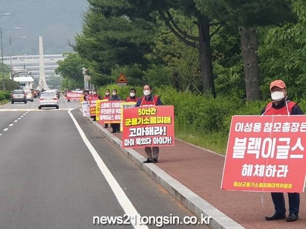 블랙이글스 소음피해 및 경유 스모크 환경오염 피해로 고통받고 있는 횡성군민들이 오는 26일(수) 공가 있는 계룡대 정문 앞에서 결의대회를 갖고 공군참모총장 면담과 블랙이그스 해체 및 군용기소음피해 대책 마련을 촉구하는 결의대회를 개최했다.