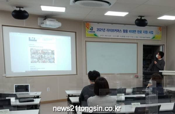 이천시농업기술센터(소장 김영춘)는 5월 26일부터 8월 24일까지 농업기술센터 창업보육교육장에서 관내 농산물가공 5개 경영체가 참여한 가운데‘라이브커머스 활용 비대면 판로지원 사업’으로 진행되는 라이브커머스 교육을 추진한다.