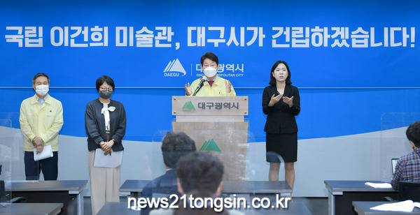 (대구=뉴스21통신) 유재원기자 = 권영진 대구시장은 6월 1일(화) 오전 대구시청 상황실에서 정부에 기증자의 뜻을 이을 수 있는 ‘이건희 헤리티지 센터’ 건립을 건의하고, 미술관 및 보존센터, 야외 문화복합공간 등의 조성에 따른 사업비 약 2,500억원 전액의 대구시 지원을 제안했다.