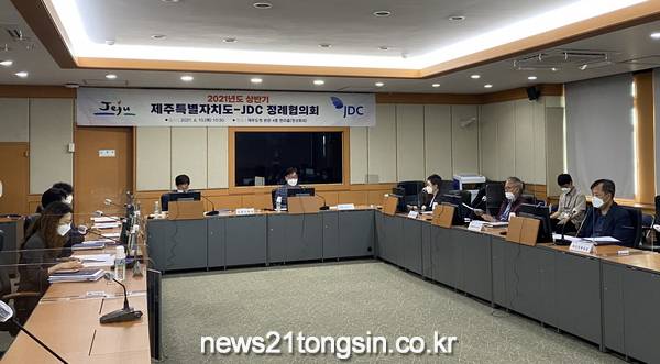 제주특별자치도는 지난 10일 오전 10시 30분 JDC와 ‘2021년 상반기 정례협의회’를 개최했다고 밝혔다.