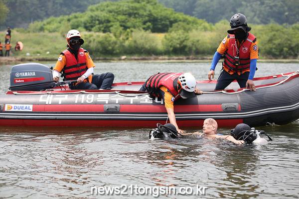 (대구=뉴스21통신) 유재원기자 = 대구소방안전본부는 10일(목) 강정고령보 일원에서 여름철 수난사고 대비 특별구조훈련을 실시했다고 밝혔다.