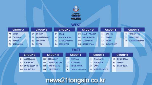 한국이 2022 AFC U-23 아시안컵 예선에서 싱가포르, 동티모르, 필리핀을 상대한다.