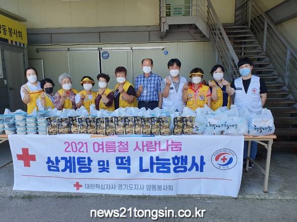 지난 16일 대한적십자사 양동봉사회(회장 최정숙)에서는 ‘삼복더위 극복 사랑 나눔 삼계탕 전달행사’를 통해 양동면 관내 저소득층 독거 어르신 60여 가구에 삼계탕과 떡을 전달하였다.