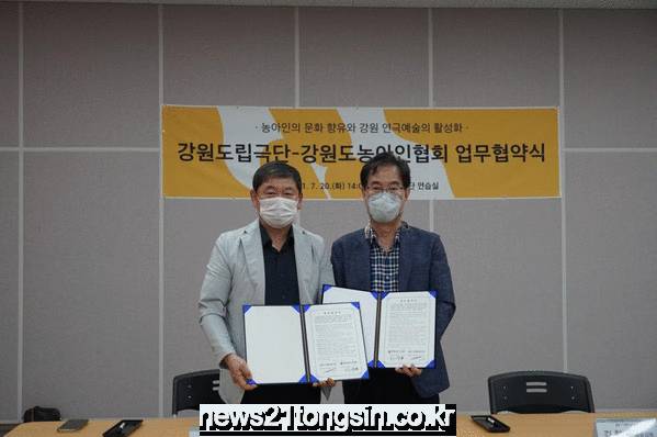 강원도립극단(예술감독 김혁수)은 20일(화) 오후 2시, 도내 농아인들의 문화 향유와 강원 연극예술 활성화를 위해 강원도농아인협회(협회장 이상용)과 업무협약을 체결했다고 밝혔다.