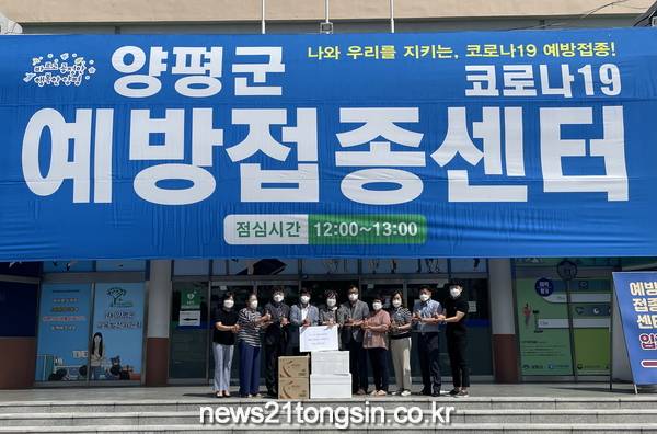 양평군새마을회(회장 김성은)는 지난 20일, 양평군 코로나19 예방접종센터(물맑은양평체육관)를 찾아가 백신예방접종에 힘쓰고 있는 의료진·봉사자들에게 간식 100인분을 전달하였다.