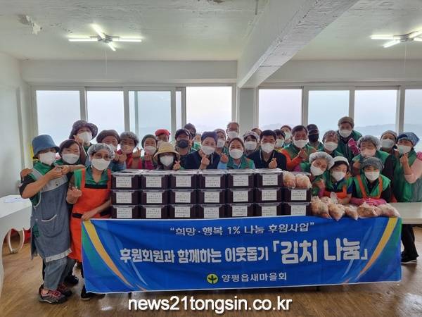 한편 양평읍 새마을회는 지역주민과 함께 더불어 사는 기쁨이 넘치는 양평읍을 만들기 위해 이번 김치 나눔 봉사 외에도 해마다 연말연시 이웃돕기 물품 전달, 3R 자원 재활용품 모으기, 사랑의 김장 나눔 지원 사업 등 지속적으로 따뜻한 활동을 이어오고 있다.
