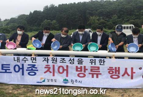 현장 방문에 앞서 수산자원 회복을 위하여 강원도 내수면자원센터에서 생산한 민물고기인 대농갱이 5만 마리(5~7cm급)를 16시에 원주시 섬강강 일원(간현유원지)에 방류했다.