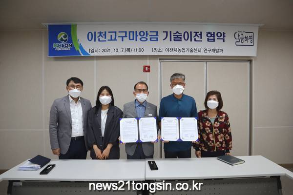 이천시 농업기술센터(소장 김영춘)는 자체개발기술인‘3색 고구마앙금 제조기술’을 일반에 이전키로하고, 하영농원(대표 김의수)과 기술이전 협약을 체결했다고 밝혔다.