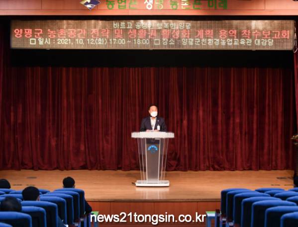 정동균 군수는 “농촌협약 공모에 선정되면 농촌의 정주여건 개선으로 양평군에 새로운 활력을 불어넣는 계기가 될것으로 기대된다”며 “전제조건 이행등 공모사업을 철저히 준비해 농촌협약이 체결될 수 있도록 최선을 다하겠다고”고 말했다
