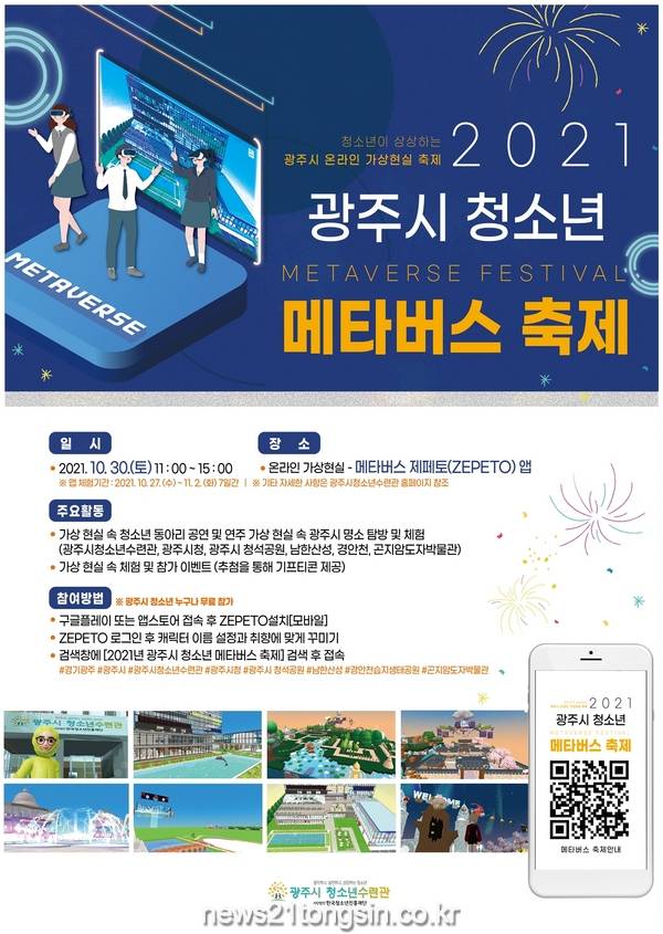 광주시 청소년수련관이 코로나19로 지친 청소년들을 위한 가상현실 소통·화합의 장인 ‘2021년 광주시 청소년 메타버스 축제’를 개최한다고 21일 밝혔다.