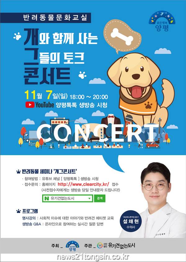 체계적인 반려동물 교육을 통한 올바른 반려동물 문화 정착과 동물생명존중 의식고취로 인한 유기동물 없는 양평군을 위해 하반기 반려동물 문화교실을 유튜브 생방송 세미나 방식으로 진행될 예정이다.