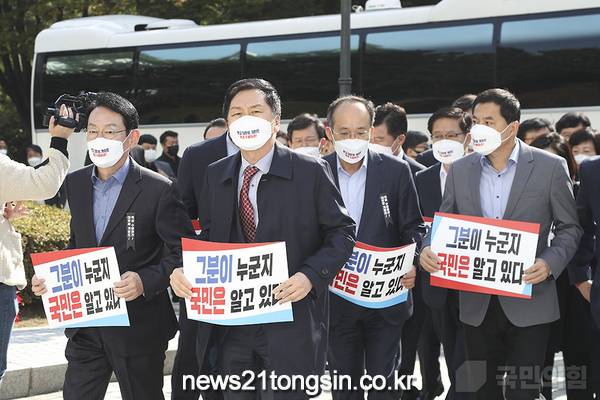 김 원내대표는 검찰의 대장동 의혹 수사에도 "수사가 아닌 수사 쇼를 하고 있다"며 "꼬리 자르기가 아닌 꼬리의 깃털 뽑기를 하고 있다는 생각을 지울 수 없다"고 꼬집었다.