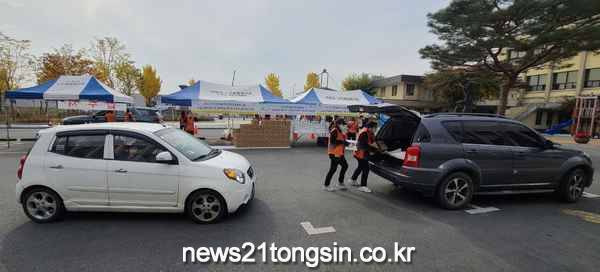 드라이브스루를 이용하여 김장 김치와 간식 선물세트를 받아서 즐거운 마음으로 귀가하였다.