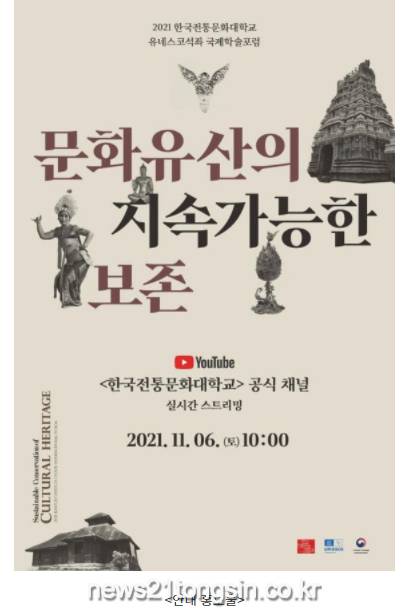 문화재청 한국전통문화대학교(총장 김영모)는 오는 11월 6일 오전 10시 한국전통문화대학교 대학원종합연구관 문화유산콘텐츠제작스튜디오에서 ‘2021 한국전통문화대학교 유네스코 석좌 국제포럼’을 개최한다.