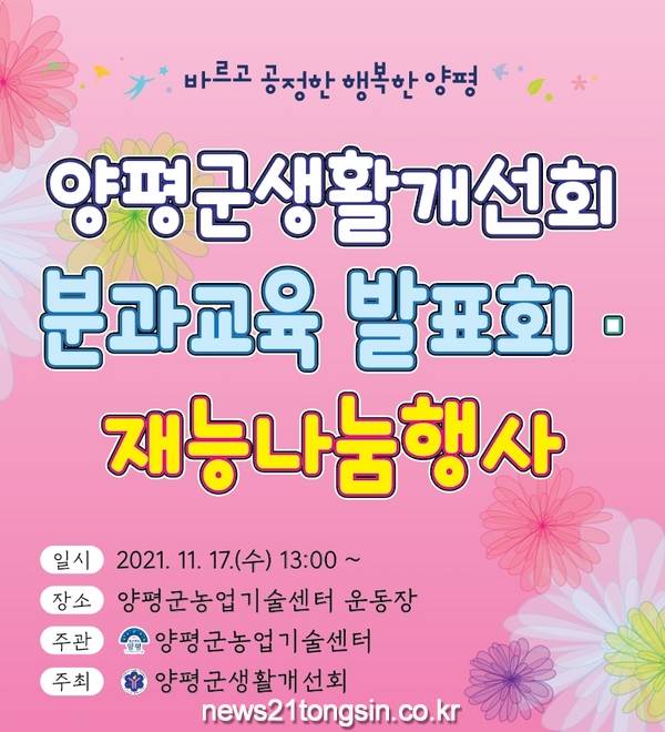 이상호 농업기술센터소장은 “양평군생활개선회는 양평군의 발전을 위한 봉사와 전문특성기술교육을 통한 농촌여성 역량을 강화하는 농업인단체로 양평군친환경농산물 및 토종농산물을 이용한 중장기적 교육과정 운영으로 양평군 여성농업인의 전문성을 강화하여 농업인단체 활성화 및 지역농업경쟁역을 향상시키기 위해 최선의 노력을 기울이겠다.”고 말했다.