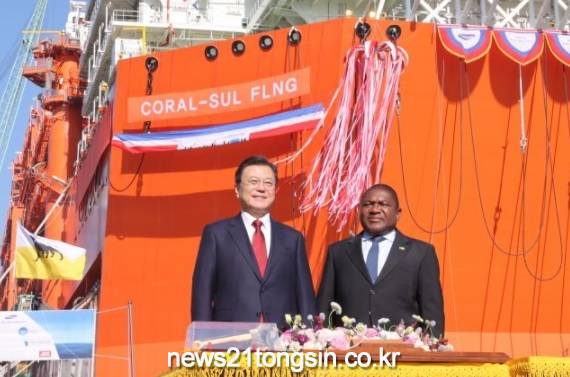 문 대통령은 “탄소중립에 이르는 과정 동안 화석연료 중 탄소배출이 가장 낮고 발전 효율이 높은 LNG는 석탄과 석유를 대체할 수 있는 가장 훌륭한 저탄소 에너지원”이라며 “이번 프로젝트는 세계 여러 나라 기업이 협력해 성공시켰기에 더욱 뜻깊다. 코랄 술 FLNG와 함께 모잠비크가 아프리카의 경제강국 도약하기를 바란다”고 말했다.