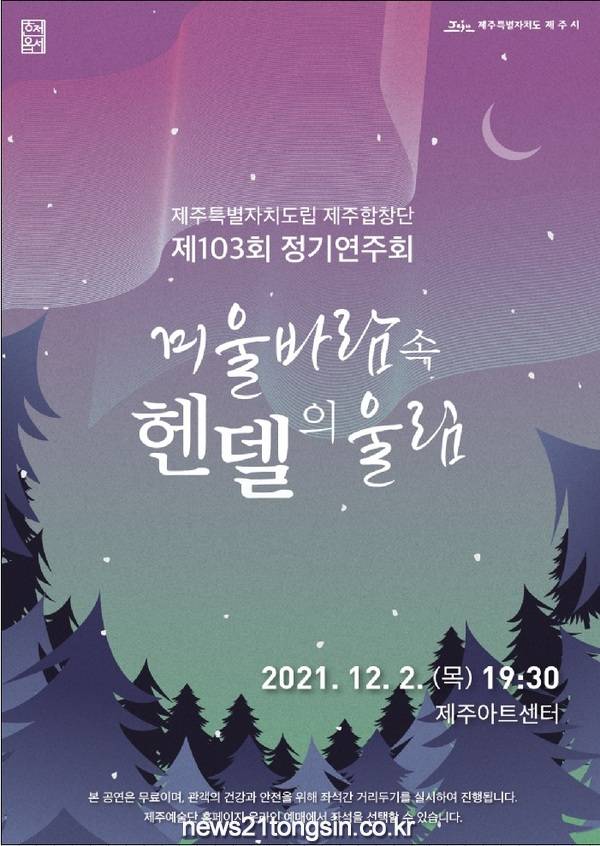 ▲  사진=제주시청□ 제주시에서는 도립 제주합창단 제103회 정기연주회 ‘겨울 바람 속 헨델의 울림’을 오는 12월 2일(목) 오후 7시 30분에 제주아트센터에서 개최한다고 밝혔다.