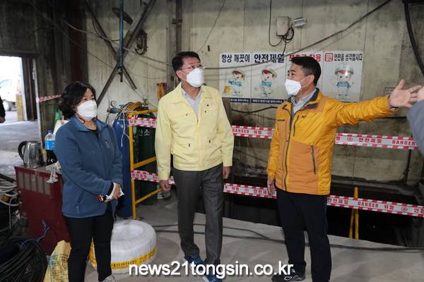 □ 안동우 제주시장은 11월 25일(목), 제주시 봉개동 폐기물처리시설을 방문해 관계자들을 격려하고 음식물류 폐기물 처리상황을 점검하는 동시에 변경되는 건조화 처리시설 공사 현장을 확인했다.