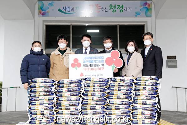 ▣ 제주시에서는 12. 1.(수), (사)대한물리치료사협회 제주특별자치도회(회장 고용수)에서 다가오는 연말을 맞아 이웃사랑 백미(10kg) 50포(150만원 상당)를 제주시로 기탁해 왔다고 밝혔다.