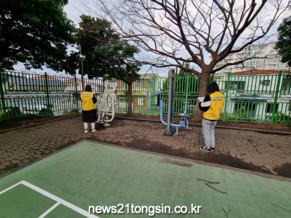 ▲  사진=제주시제주시는 공원이용객의 안전과 체계적인 시설물 관리를 위해 신산공원 등 도시공원 130개소에 설치된 야외운동기구에 대한 전수조사를 실시하고 있다고 밝혔다.