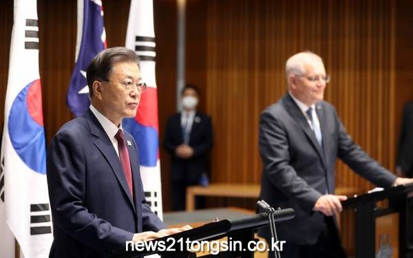 종전선언에 대한 모리슨 총리의 지지도 재확인했다. 문 대통령은 “모리슨 총리는 한반도 평화 프로세스를 위한 우리 국민의 노력을 적극 지지해 주셨으며, 양국은 한반도 비핵화와 항구적인 평화, 인도·태평양 지역의 평화·번영을 위해 계속 협력하기로 했다”고 말했다.