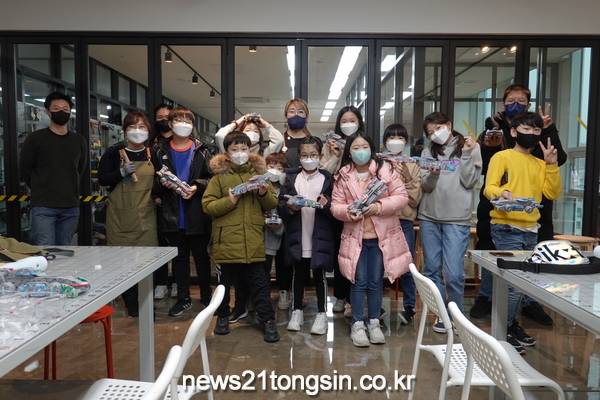 이번 워크숍은 장난감자동차 키트를 조립하는 프로그램으로, 관내 초・중학생이 총 3회에 걸쳐 51명이 참여했다. 특히 환경보호를 위해 참가자들이 직접 모아서 가져온 PET병 뚜껑을 재료로 사용해 더욱 의미가 있었다.