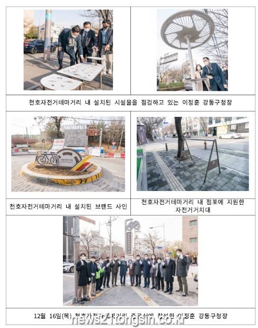 ▲ 사진=강동구강동구(구청장 이정훈)가 천호동공원사거리부터 한강으로 가는 즈믄나들목까지 (천호자전거거리)에 자전거를 테마로 한 ‘천호자전거테마거리’를 조성했다.
