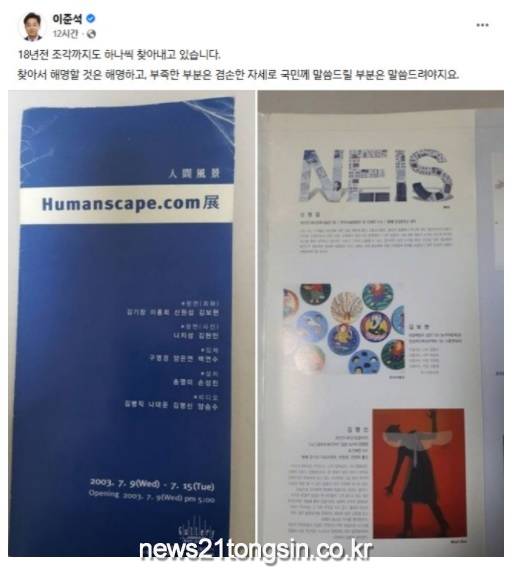 이어 "2003년 인물화를 주제로 한 Humanscape.com전(단체전)에 김건희 대표가 작가 및 기획으로 참여한 사실이 확인됐다"라며 팸플릿을 공개했다.