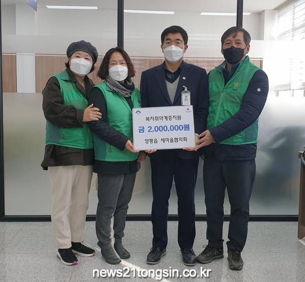 이에 신동원 양평읍장은 “매년 뜻깊은 이웃사랑 나눔을 몸소 실천해주시는 양평읍 새마을회에 깊은 감사의 마음을 표한다.”며 “새마을회 분들의 아름다운 마음 씀씀이를 우리 읍 지역사회의 어려운 이웃들에게 잘 전달하겠다.”고 전했다.