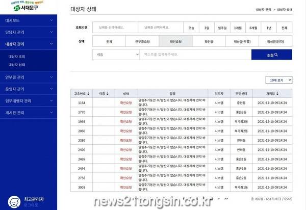 또 동주민센터 공무원에게 안부를 확인하라는 문자메시지와 이메일을 자동 발송한다.