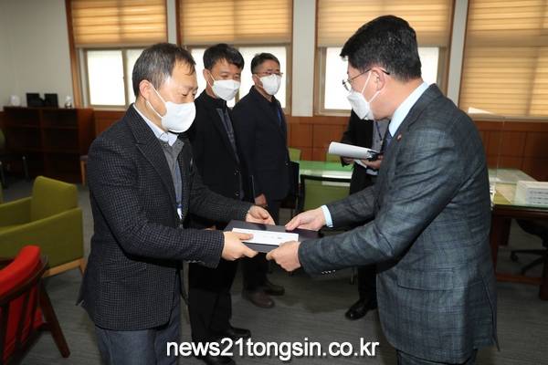 제주시는 22일, 시장 집무실에서 2021회계연도 세외수입 징수 우수 부서 10개 부서를 선정해 포상했다.