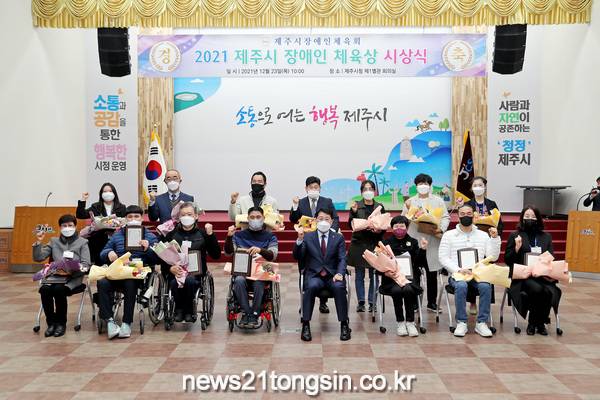 안동우 제주시장은 12.23.(목) 10:00, 제주시청 제1별관 회의실에서 개최된 ‘2021 제주시 장애인체육상 시상식’에 참석해 제주시 장애인체육의 발전을 위해 헌신한 유공자들을 격려했다.