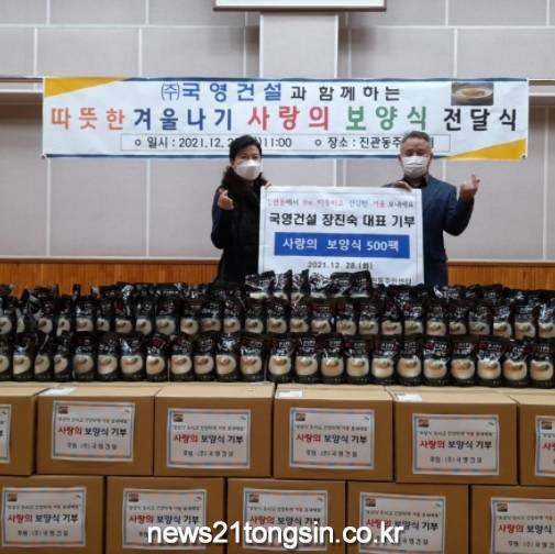 장우연 진관동장은 “어려운 상황 속에서 춥고 힘든 겨울을 보내고 있는 어르신들에게 사랑의 보양식을 나누며 연말연시 지역사회의 사랑을 느낄 수 있도록 따뜻한 관심을 보내주신 ㈜국영건설에 감사의 뜻을 표한다”고 전했다.