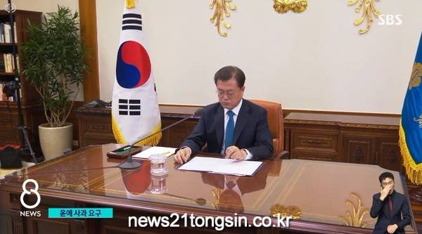 ▲ 사진=SBS NEWS 영상 캡처문재인 대통령은 10일 전날 윤석열 국민의힘 대선 후보의 집권 시 '적폐 수사' 발언에 대해 "현 정부를 근거 없이 적폐 수사의 대상, 불법으로 몬 것에 대해 강력한 분노를 표하며 사과를 요구한다"고 밝혔다.