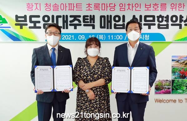 한편, 지난해 9월 태백시청 집무실에서 개최한 부도임대주택 매입 실무협약식에서 태백시장과 LH공사 강원지역본부장은 ‘LH공사와 태백시가 협의한 부도임대주택 수리비 33억 원에(태백시 25억 원, LH공사 8억 원) 동의하고 ‘태백 청솔 부도임대주택 임차인 보호를 위한 협약’을 체결해 입주민의 구제하는데 힘을 모으기로 한 바 있다.