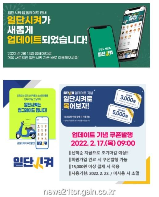 강원도 착한 배달앱 민간 운영사인 코리아센터는 앱 이용 편의성 개선을 위해 2.14일 앱 업데이트를 진행했다.
