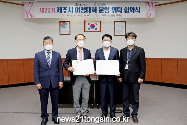 제주시는 3월 16일 제주시청 본관 회의실에서 제주대학교와 제22기 제주시 여성대학 운영 위탁을 체결했다고 밝혔다.