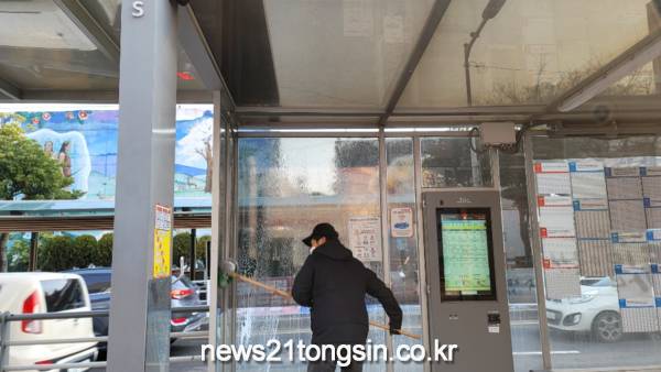 또한 고압 세척 장비를 이용해 유리 전면에 대한 고압 세척 및 주변 청소 등 시설물 전반에 대한 환경정비를 진행하고, 바이러스 살균력을 인증받은 무공해 소독수를 이용해 승차대 내·외부 및 버스정보안내기(BIT), 의자 등 승차대 내 편의시설까지 방역소독을 실시한다.