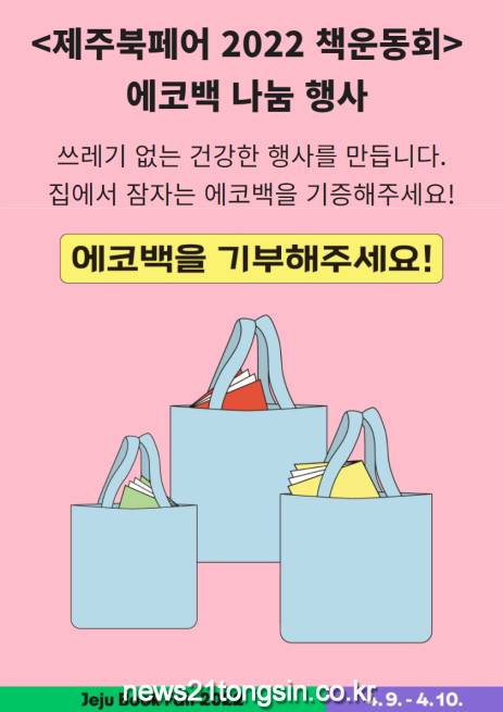 ▲  사진=제주시탐라도서관에서는 오는 4월 9일(토), 10(일) 이틀간 한라체육관에서 열리는 <제주북페어 2022 책운동회>에서 일회용 봉투 대신 에코백을 재사용하는 이벤트를 추진한다.