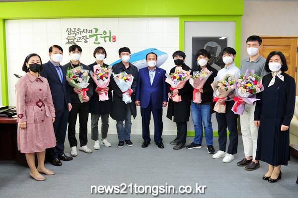 군위군은 지난 6일 군청 제1회의실에서 복무만료 공중보건의사 8명에게 지역주민의 건강증진과 감염병 대응을 위해 투철한 사명감으로 성실히 복무한 공로를 인정해 감사패 전달식을 가졌다고 밝혔다.