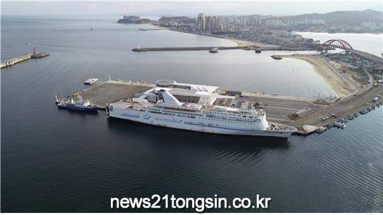 ▲ 사진=속초시속초항을 모항으로 한 국제항로에 투입하기 위해 속초항 크루즈 선석에 정박 중이었던 한창강원호가 매각되어 속초항에서 철수한다.