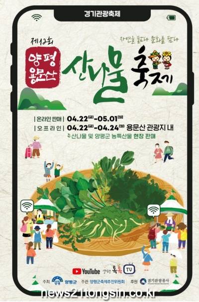 오프라인 행사 외에도 온라인으로 진행되는 <네이버 쇼핑라이브>가 4월 22일부터 4월 24일까지 3일간 하루 1시간씩 진행되며 <티몬 플랫폼>을 통해서 4월 22일부터 5월 1일까지 10일간 “양평 용문산 산나물 축제 특별기획전”이 준비되어 있다. 여기에 경동방송으로 진행되는 <디라이브 홈쇼핑>이 4월 21일부터 5월 13일까지 하루 3회 방송되는 등 지역경제 활성화를 위한 다양한 판매 프로그램을 진행한다.