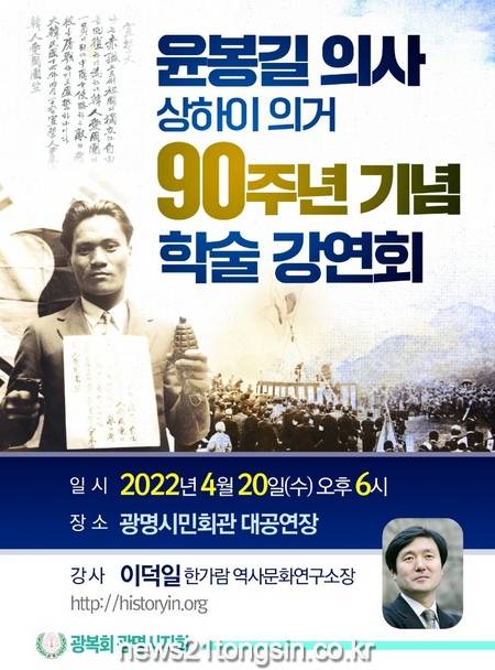 ▲ 사진=광복회광명시지회광복회광명시지회는 윤봉길 의사 상하이 의거 90주년을 맞아 4월 20일 오후 6시 광명시민회관 대공연장에서 이덕일 한가람 역사문화연구소 소장을 초빙해 강연회를 개최한다.