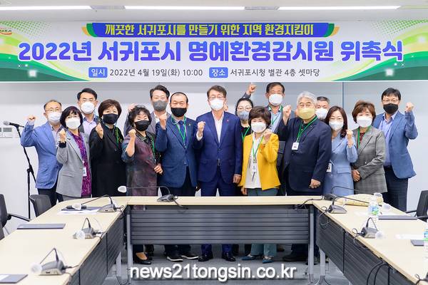 ▲  사진=서귀포시서귀포시(시장 김태엽)는 4월 19일(화) 10시에 서귀포시 별관 4층 중회의실(셋마당)에서 서귀포시의 자율자발적 환경감시 활동 강화를 위한 시민 명예환경감시원 149명을 위촉했다.