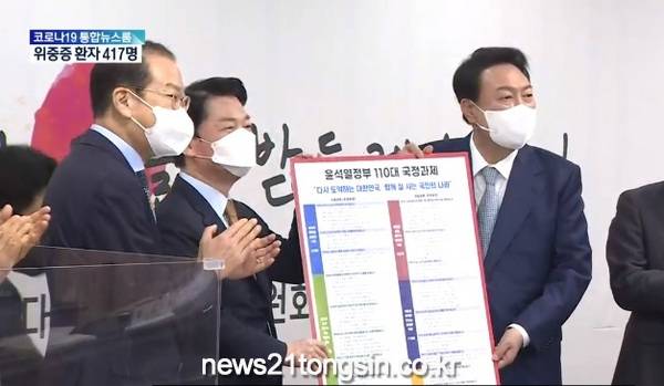 ▲ 사진=KBS NEWS대통령직인수위원회가 10일 출범하는 윤석열 정부의 국정비전을 '다시 도약하는 대한민국, 함께 잘 사는 국민의 나라'라는 슬로건을 내걸고 110대 국정과제를 선정 발표했다.